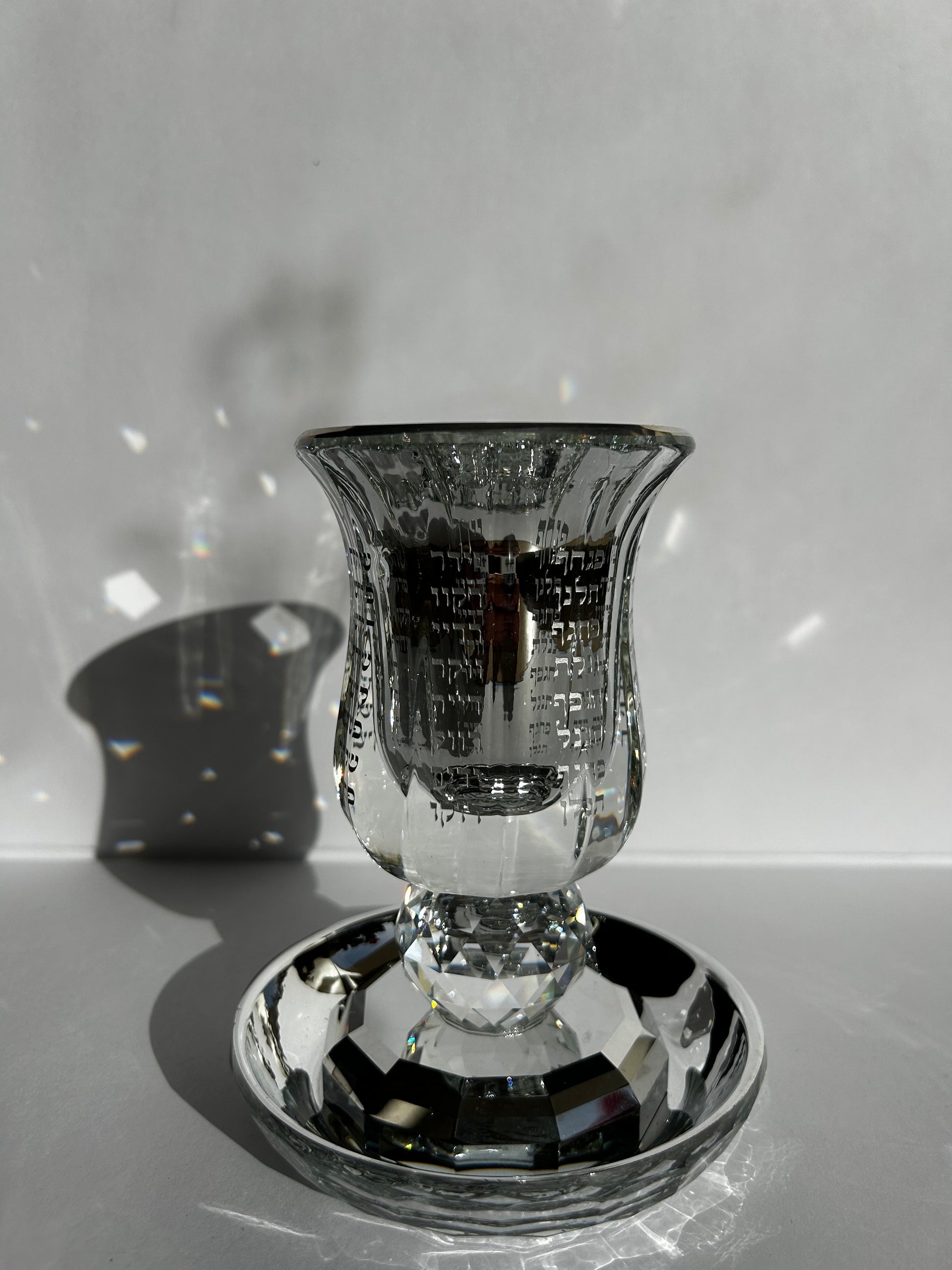גביע קידוש קריסטל מהודר ״הנהרות״ עם רגל