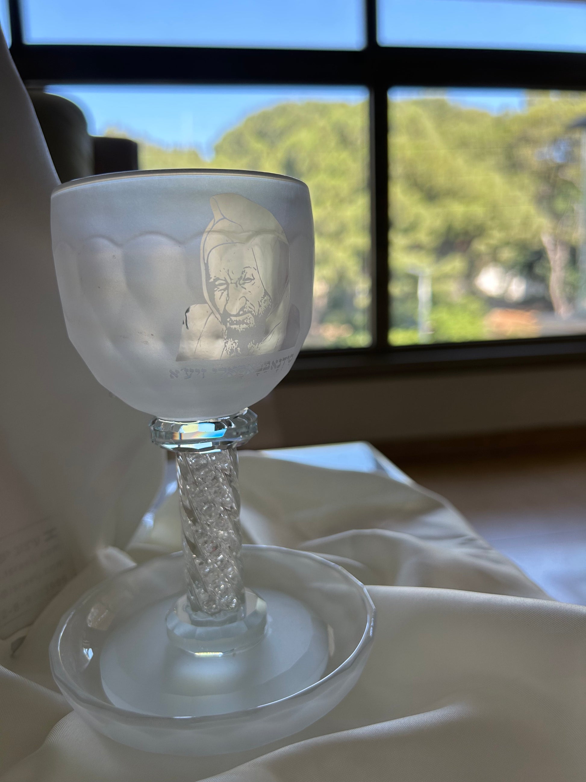 כוס קידוש קריסטל ״בבא סלי״ עם רגל אבנים כסף