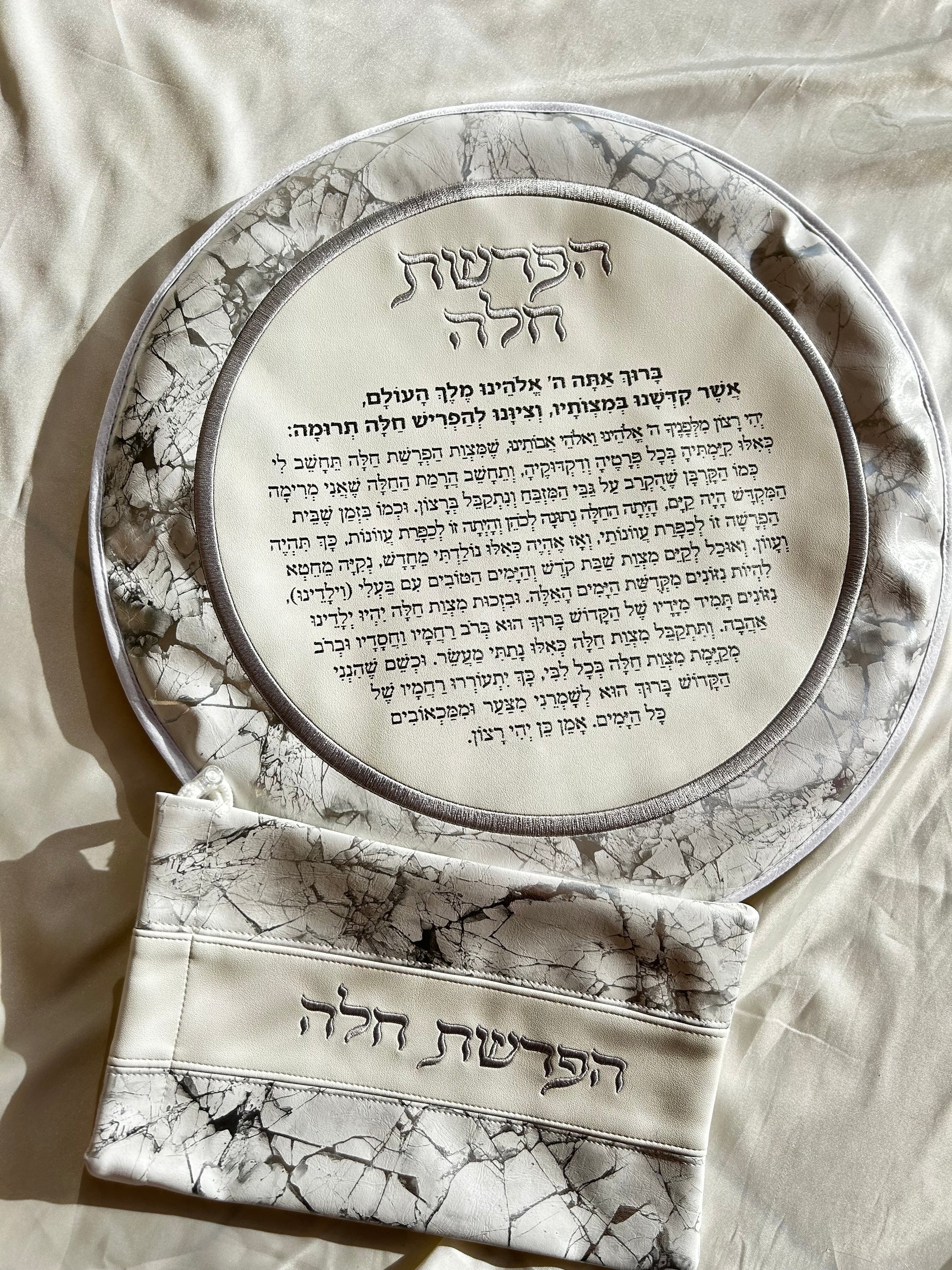 סט הפרשת חלה דמוי עור מהודר צבע שיש