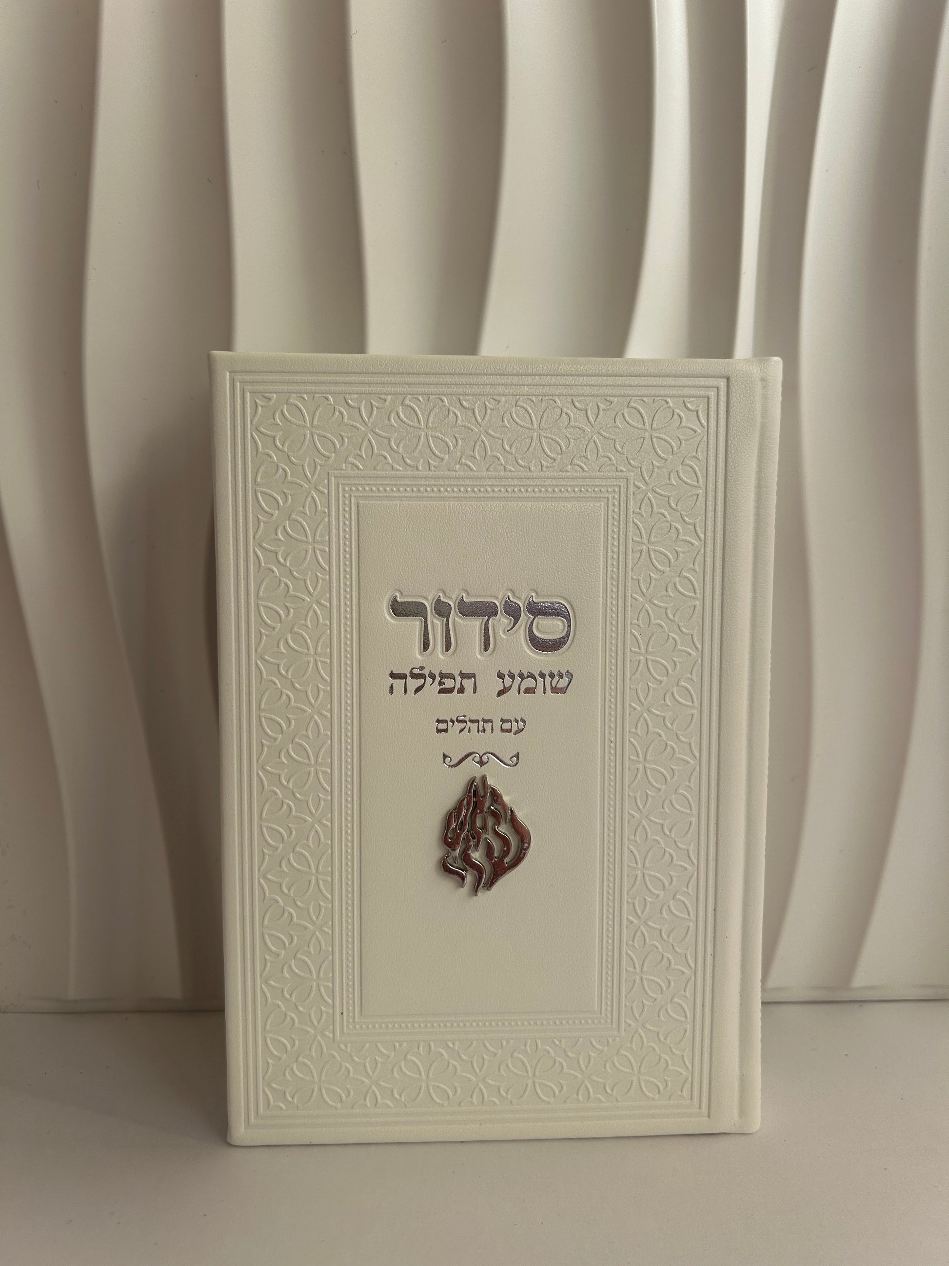 סידור תפילה ״האש שלי״ בצבע לבן עם עיצוב אלגנטי ועדכני המשלב תחושת יוקרה וקדושה. הסידור כולל הטבעות כסף ייחודיות וצ'ארמס "האש שלי"