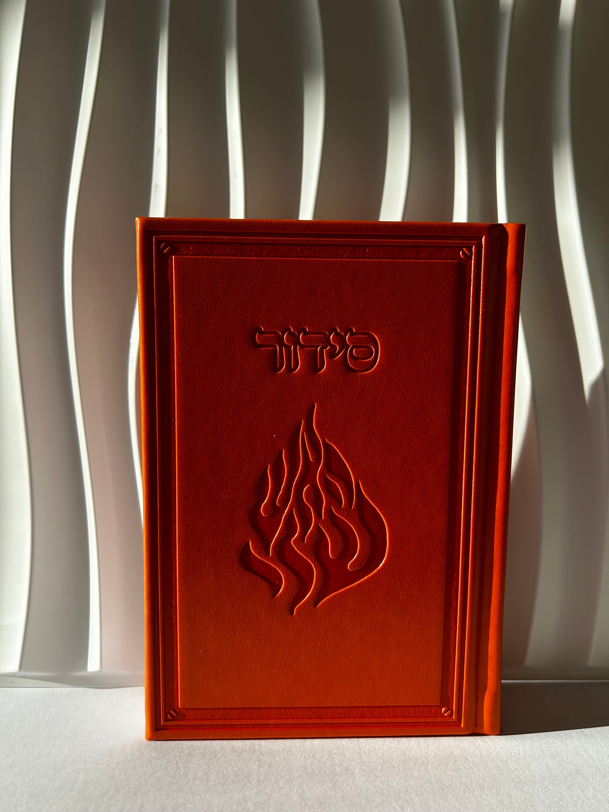 •כריכה בצבע כתום ייחודי, עם הטבעת האש שלי ללא צבע נוסף במרכז הסידור ליצירת מראה יוקרתי.